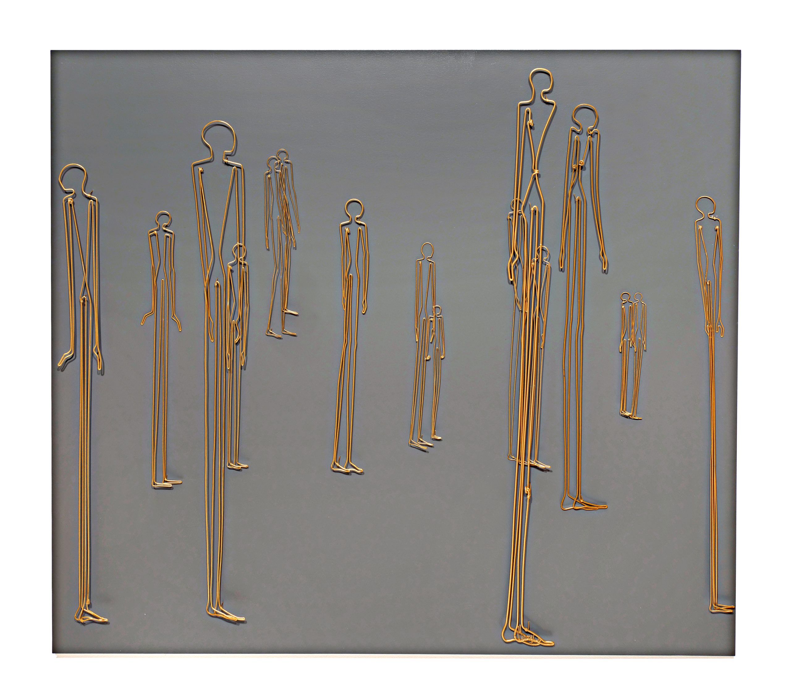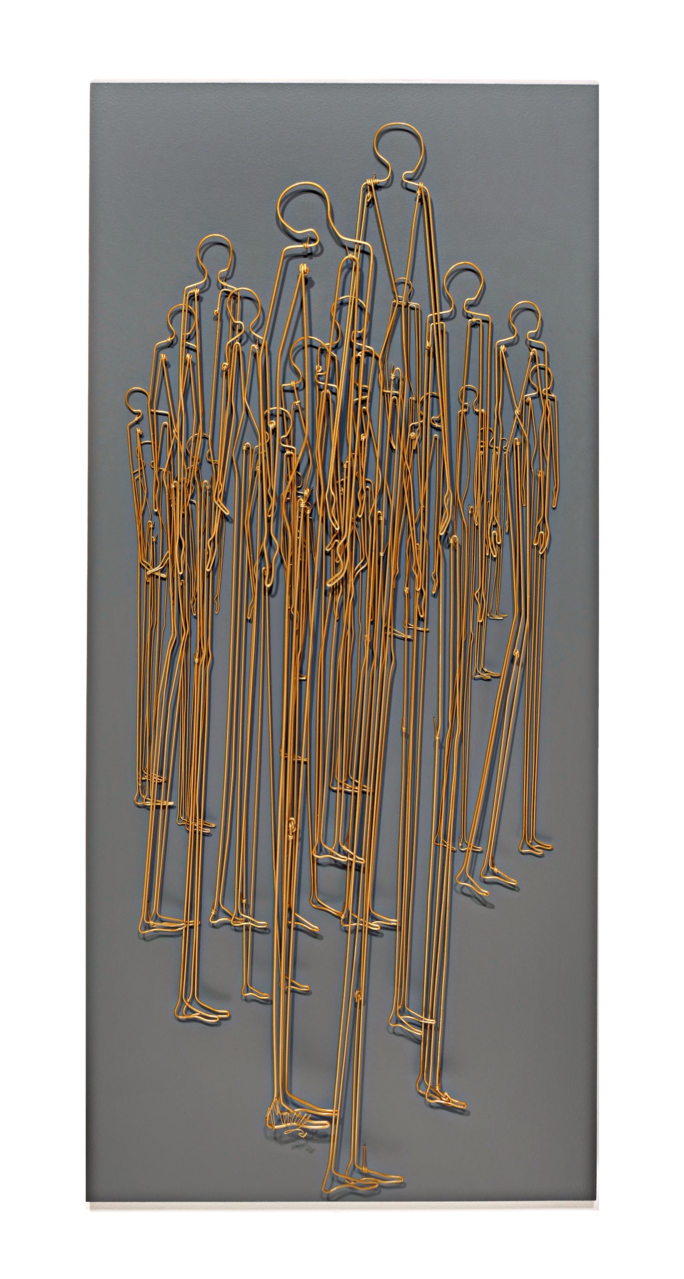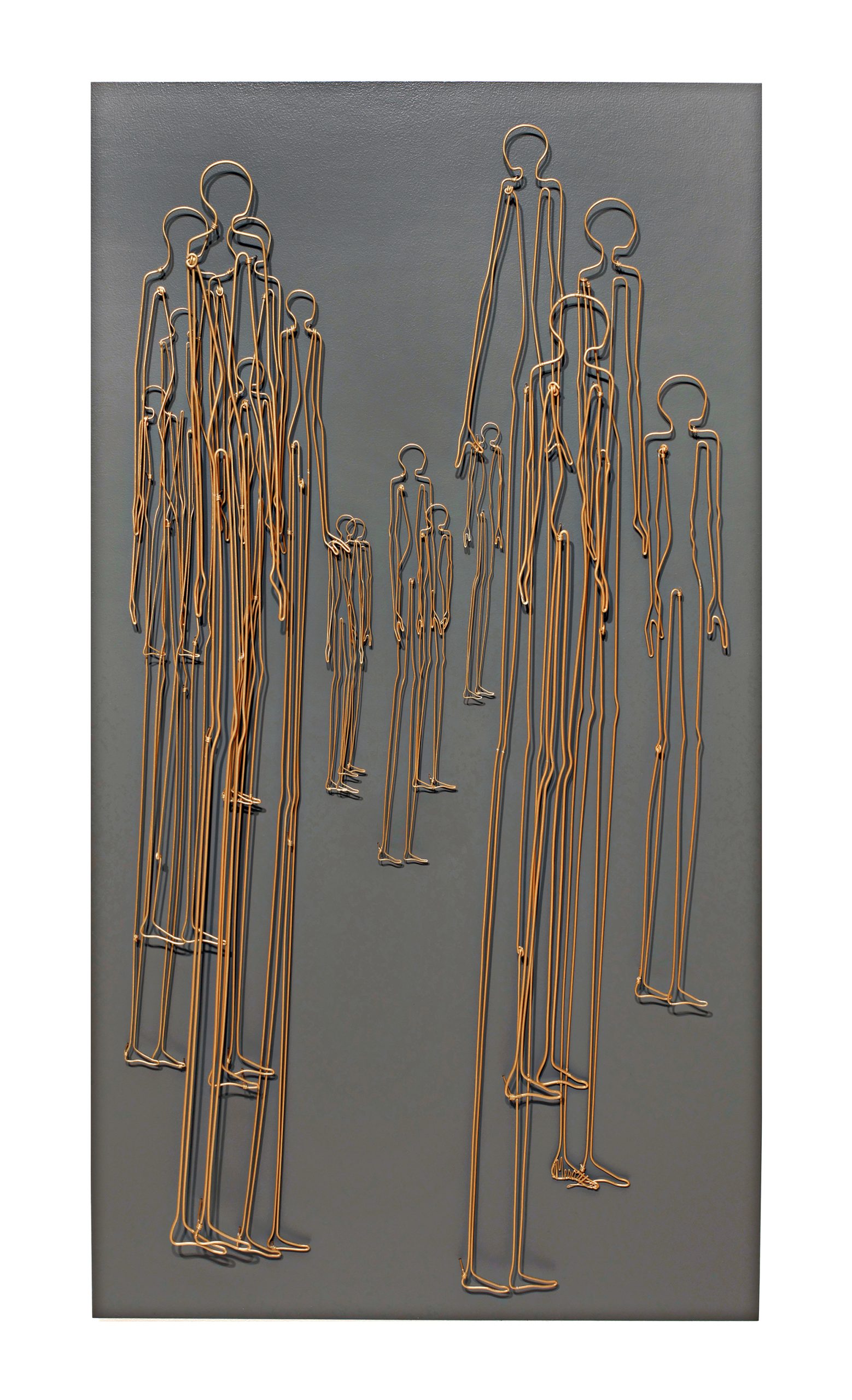 owder coated steel wire on wood panel,